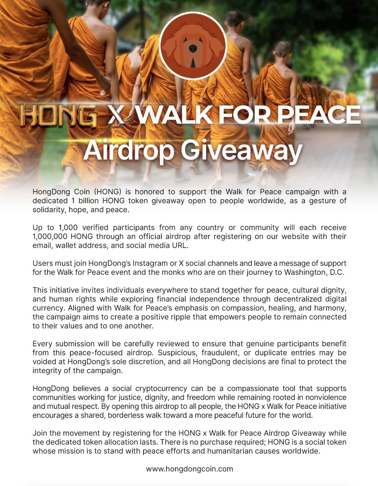 HONG is a social coin with no real intrinsic value or promise of financial return. It’s sole purpose is build a community to support humanitarian causes. Trading crypto is extremely risky and can lead to significant or complete losses. The HONG social coin can be highly volatile. Conduct thorough research. By trading or purchasing HONG, you acknowledge this disclaimer.